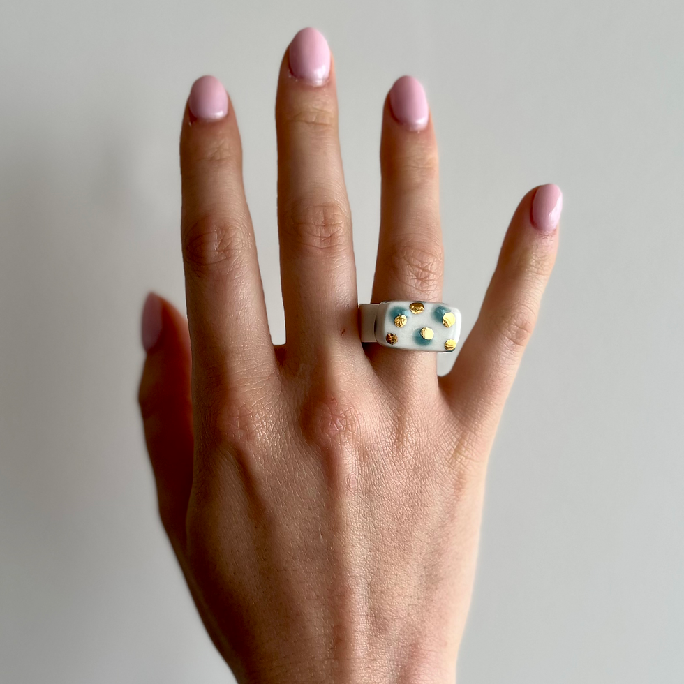 Hand made of the finest porcelain and decorated with pure gold, each ring is absolutely unique.