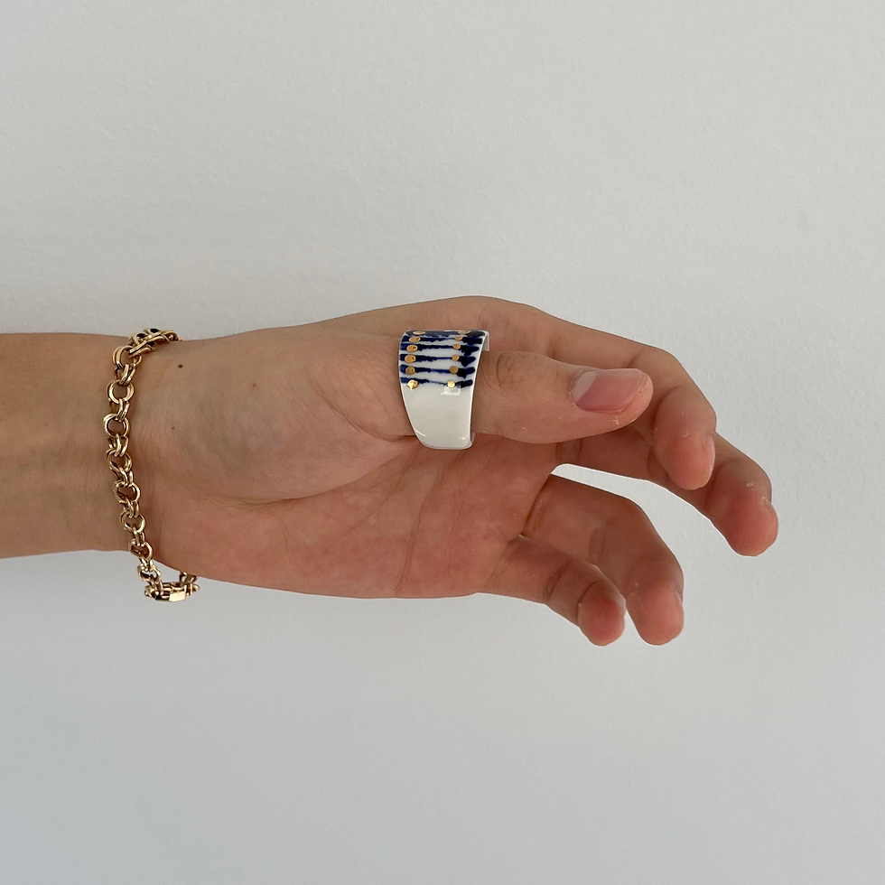 Hand made of the finest porcelain and decorated with pure gold, each ring is absolutely unique.